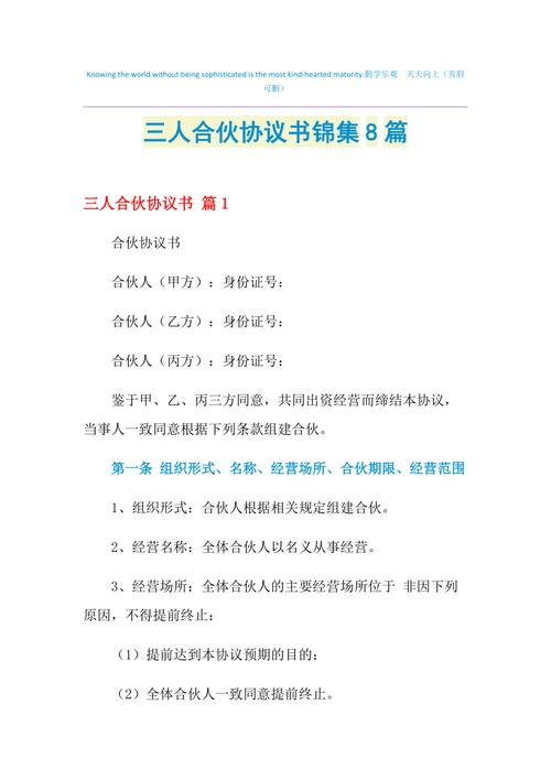 三人合伙股东协议书范本图片