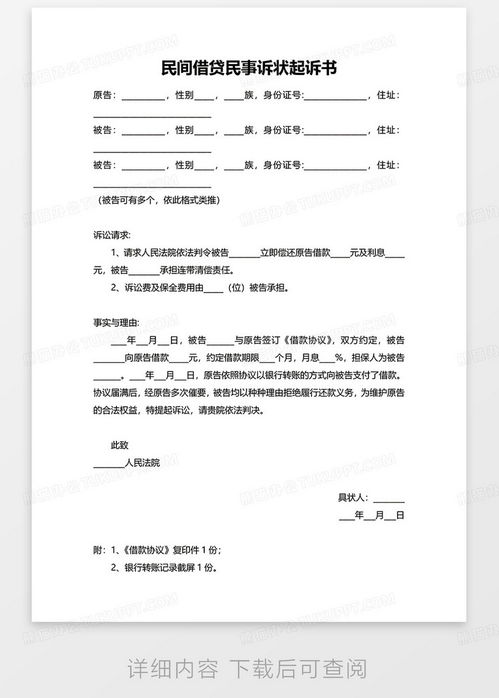 起诉状模板展示